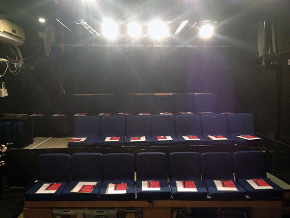 舞台が触れられるほど近く、俳優の息遣いまで感じられる25席の空間。
