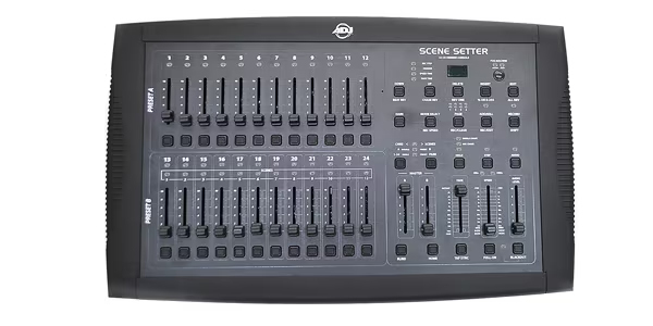 24チャンネルタイプのDMXコントローラーです。合計48チェース、4200ステップシーンまでのプログラムが可能です。